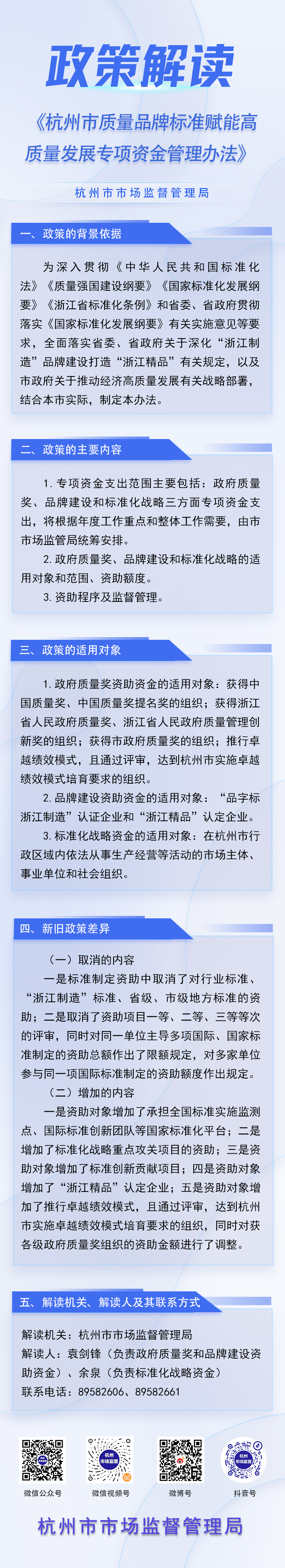 《杭州市質量品牌標準賦能高質量發展專項資金管理辦法》政策解讀(圖文解讀)